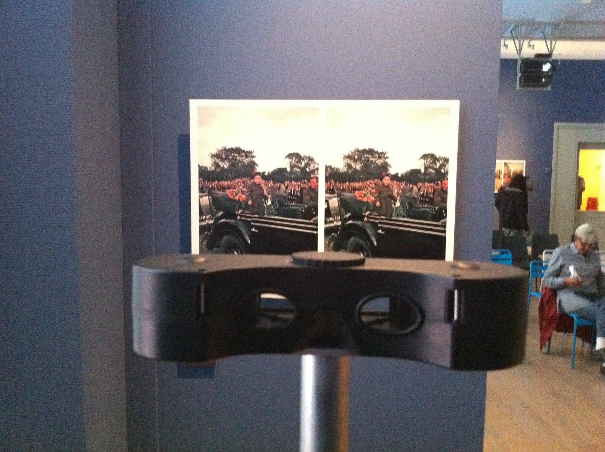 Op de expositie kon je de stereobeelden op verschillende manieren bekijken: op grote afdrukken van de linker- en rechterdia met een ervoor geplaatste stereokijker, en op een projectie met twee beamers met polarisatiefilter, waarvoor je een brilletje kreeg uitgereikt. De kwaliteit van de beelden is erg hoog en het diepte-effect overtuigend. De beelden brengen de oorlogsperiode weer erg dichtbij.