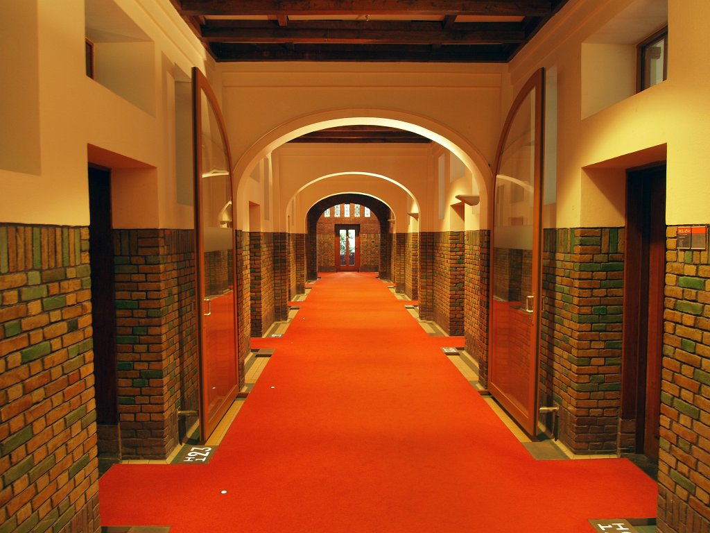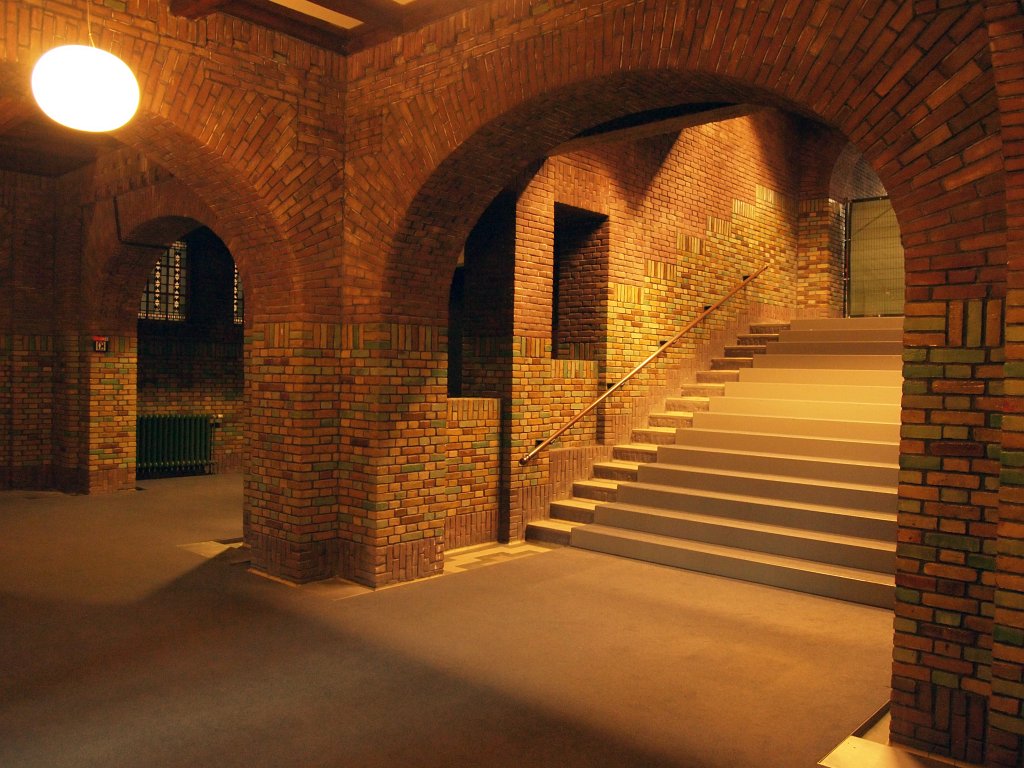 Ik zag veel mooie details zoals geglazuurde bakstenen, gebrandschilderd glas en siersmeedwerk. Het meest indrukwekkend blijven de twee torens. Ondanks alle decoraties wekt het gebouw toch een wat sombere en donkere indruk.