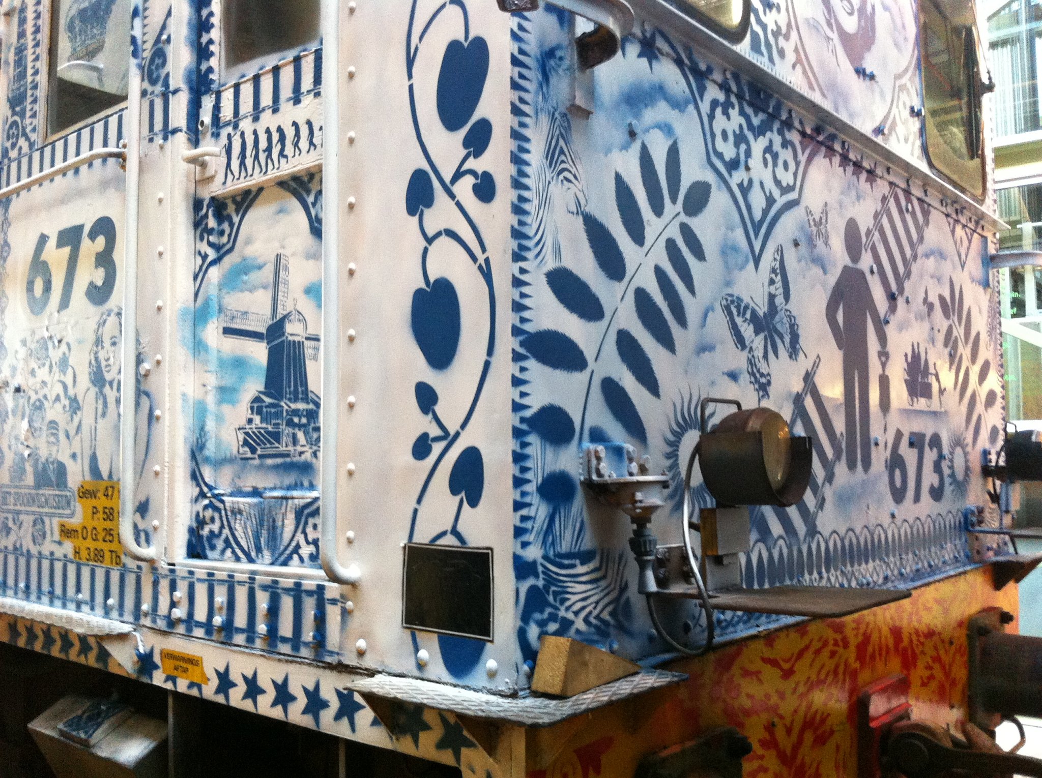 Speciaal voor Stencil Station heeft Hugo Kaagman drie collectiestukken van het Spoorwegmuseum beschilderd waaronder een diesellocomotief en een goederenwagon (video). Ze zijn voorzien van Delftsblauwe en andere kleurrijke motieven en het resultaat doet denken aan rijkbeschilderde treinen zoals die bijvoorbeeld in India rijden.
