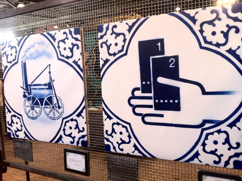 Vandaag werd in het Spoorwegmuseum de expositie Stencil Station geopend van graffitikunstenaar Hugo Kaagman. Kaagman komt voort uit de kraakbeweging in de punkperiode, maar is inmiddels een gevestigd kunstenaar. Hij werkt met uitgesneden sjablonen en spuitbussen op canvas en op voorwerpen. Bekend zijn zijn werken met Delftsblauwe motieven, zoals die onder andere te zien zijn in station Amsterdam Centraal en een gebouw in Enschede.
